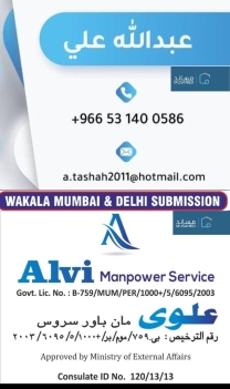 Registered & Approved by the Ministry of Overseas Indian Affairs, Government of India & the Royal Saudi Arabia Consulate in Mumbai, India.